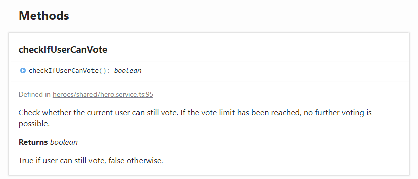 There used to be another tool for documenting Angular applications called AngularDoc. It was similar to CompoDoc in a way that it would recognize both TypeScript and Angular-specific features. It could directly scan your Github repo and generate documentation available on AngularDoc site. At this time (Dec 2017) it is unfortunately unavailable as it is being reworked (the website still exists but you cannot register). According to the authors, we have something great to look forward to.