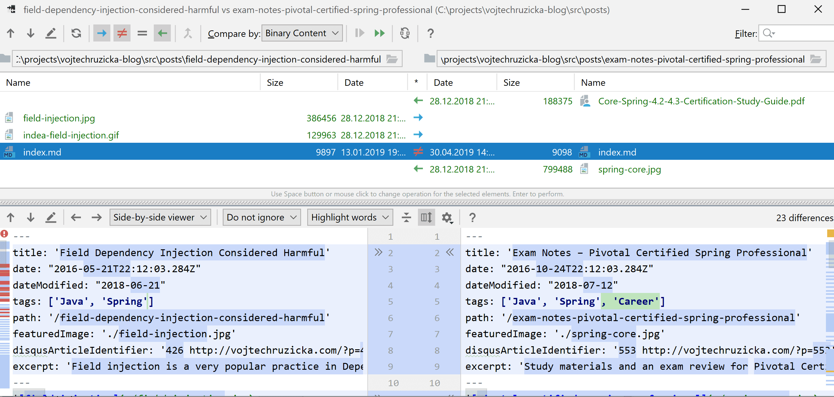 Now the new window opens, which contains two panels, each with one file. This is very similar to diff in Version Control Systems such as Git.