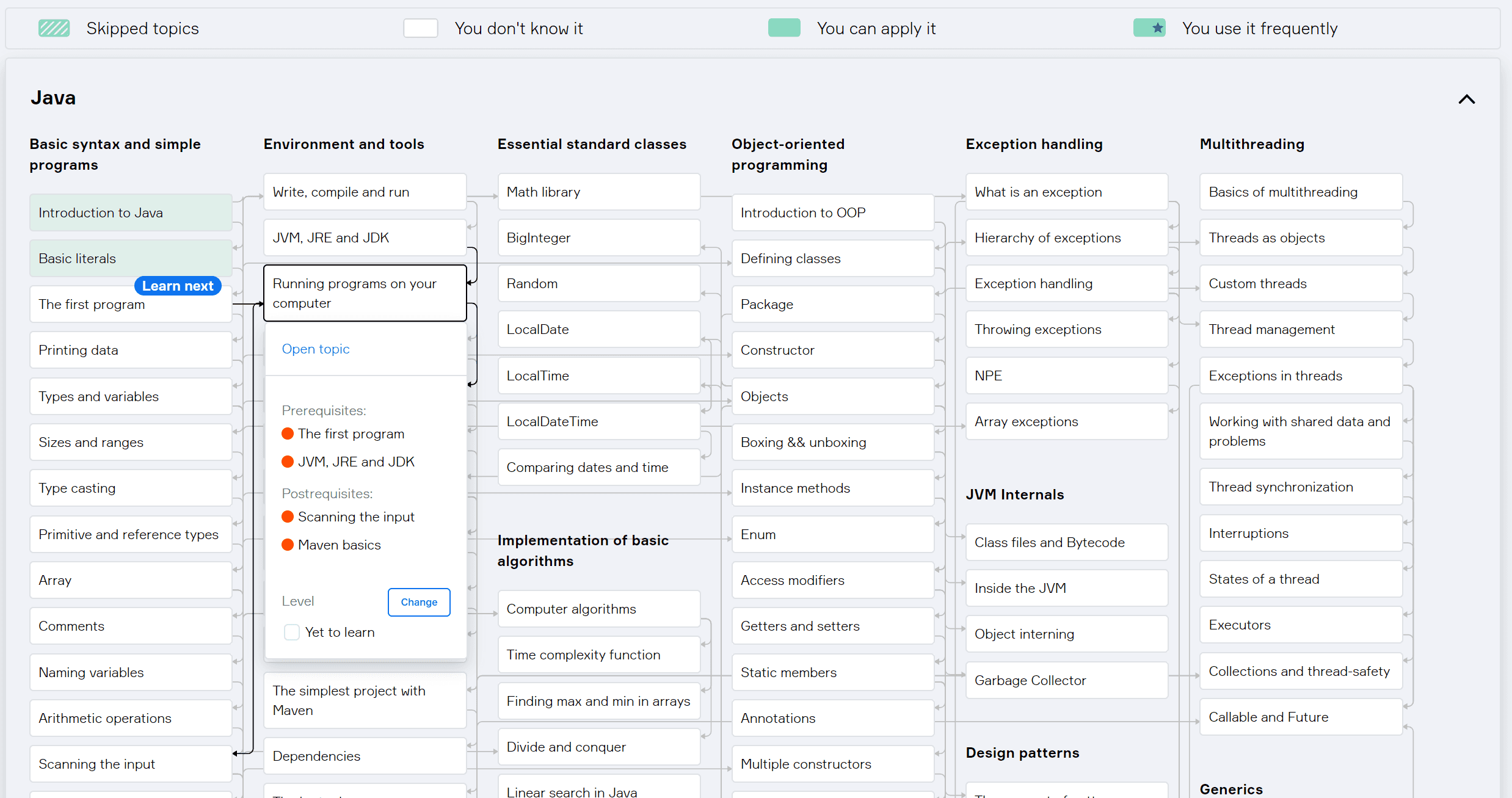 Hyperskill is another service integrated by EduTools. It is actually developed by Stepik. It is a very interesting tool with a slightly different focus. Instead of various independent courses, you build a number of projects. There is a big Knowledge map of various linked topics for each domain, where you can track your progress.