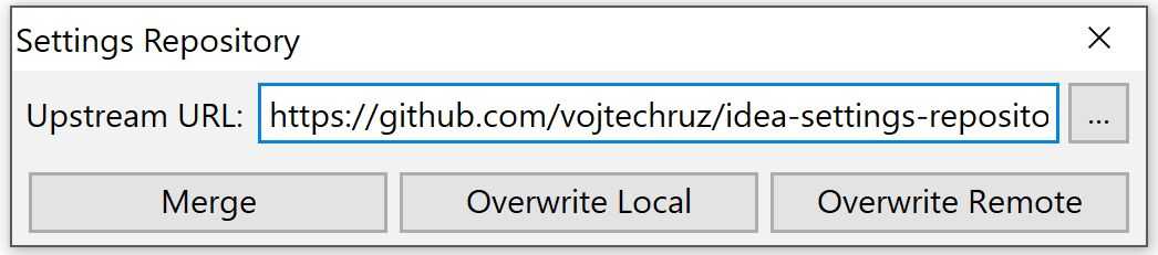 The first way to synchronize settings is using Settings Repositories. The way it works is that it uses an external Git repository to share the settings. Each IDEA instance then connects to this repository to fetch the settings. In case one instance makes changes in the settings it can be propagated back to the repository. What's nice is that it is a plain old Git repo. That means your settings are backed up and under version control. So you can track and rollback the changes if necessary or even allow other people to create Pull Requests with some tweaks to your settings.