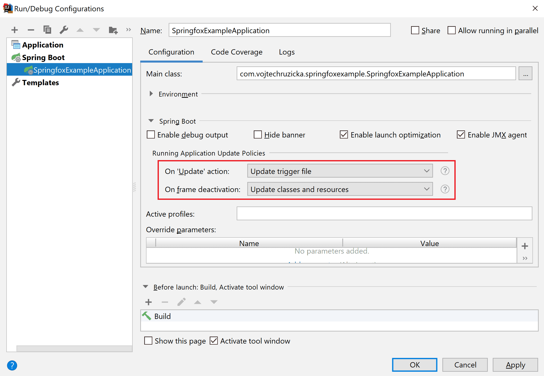 java -jar devtools-example-1.0.0.jarSame applies when your app is started via special classloader, such as on an application server. In contrast, when you run an exploded artifact (such as in your IDE), your application is considered in development mode. The same applies when using spring-boot-plugin to run the application: